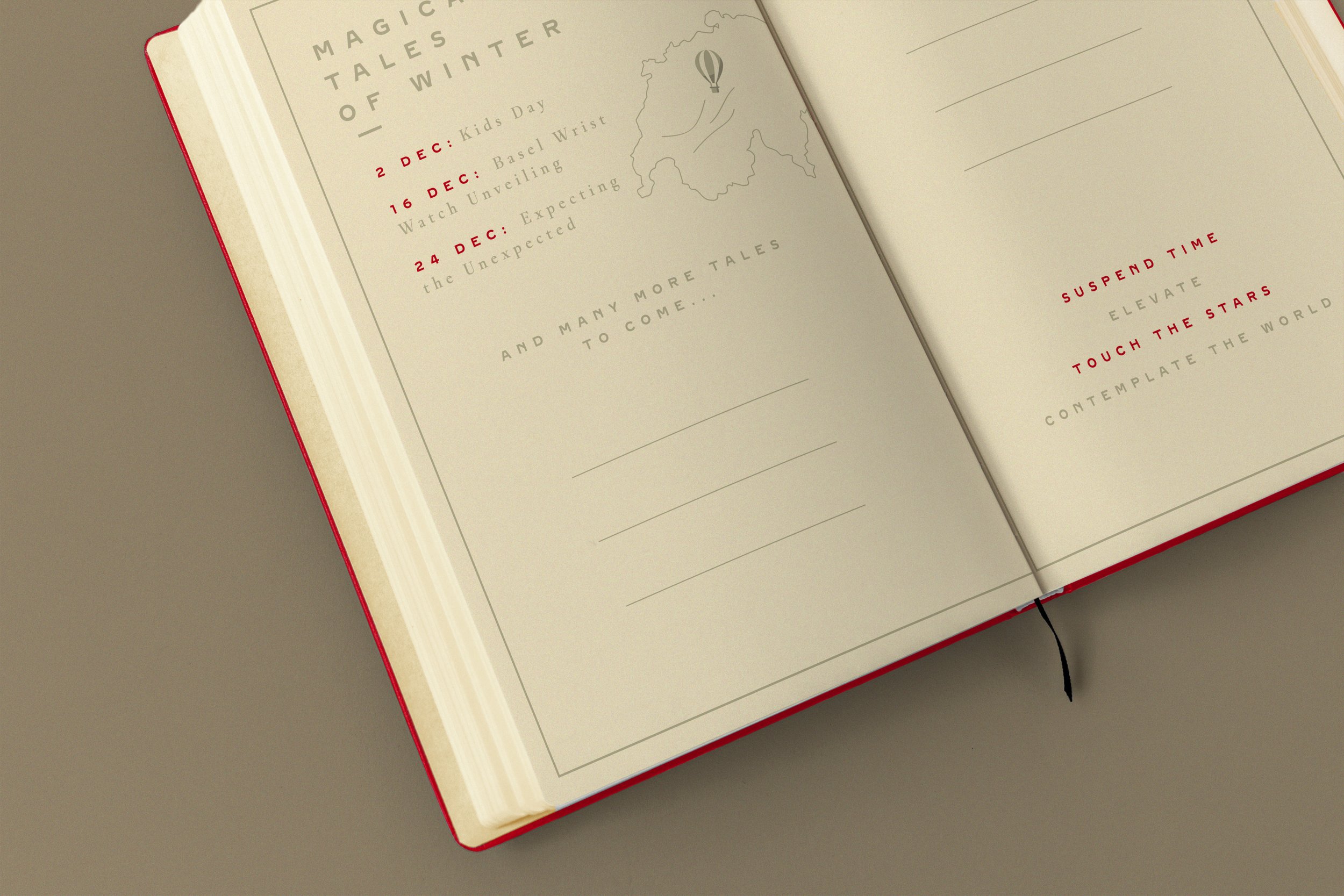 Created as a prominent in-store display and a customer offering across Cartier boutiques in Switzerland, the journal translates the festive concept into a cohesive and memorable design, balancing heritage, narrative, and contemporary refinement.