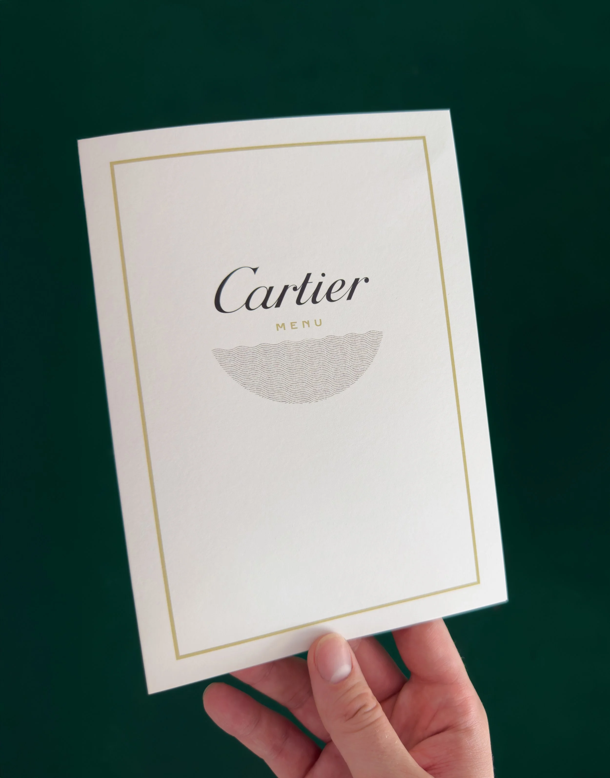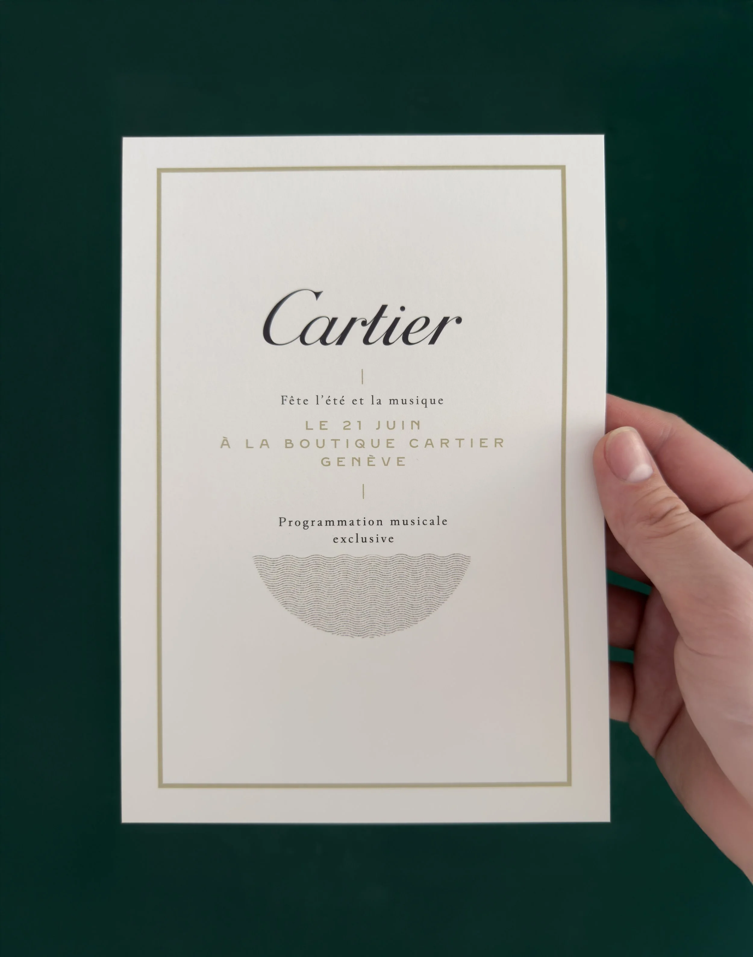 A semi-circular wave motif was developed as a central element, with a subtle hand-crafted quality that evokes a sense of summer, calm, and serenity. Gently framing the Cartier logotype, it introduces a soft and fluid visual language applied consistently across all touchpoints.