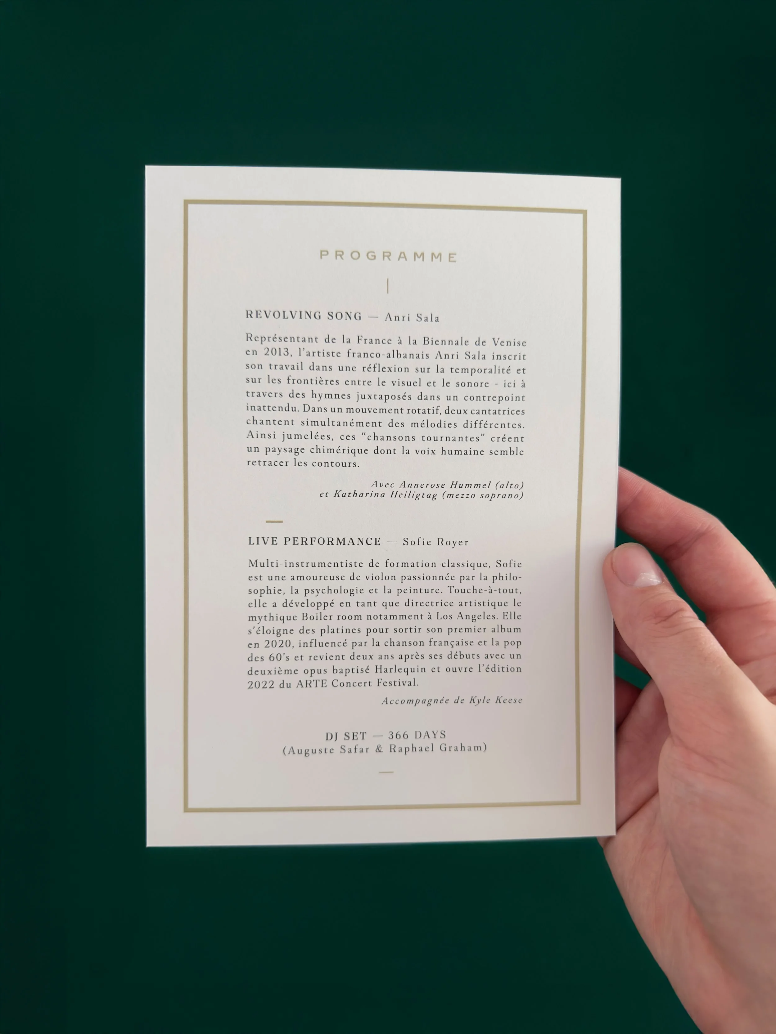 The project included the design and production of all event materials, from printed programs and menus to a photocall, DJ booth, and bespoke signage, ensuring a unified and elevated expression throughout.